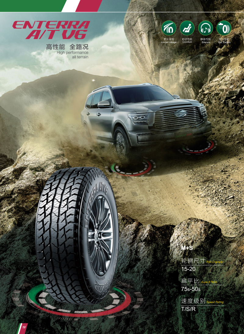 高性能越野輪胎,強壯花紋塊和胎體,能適應(yīng)各種惡劣路況。